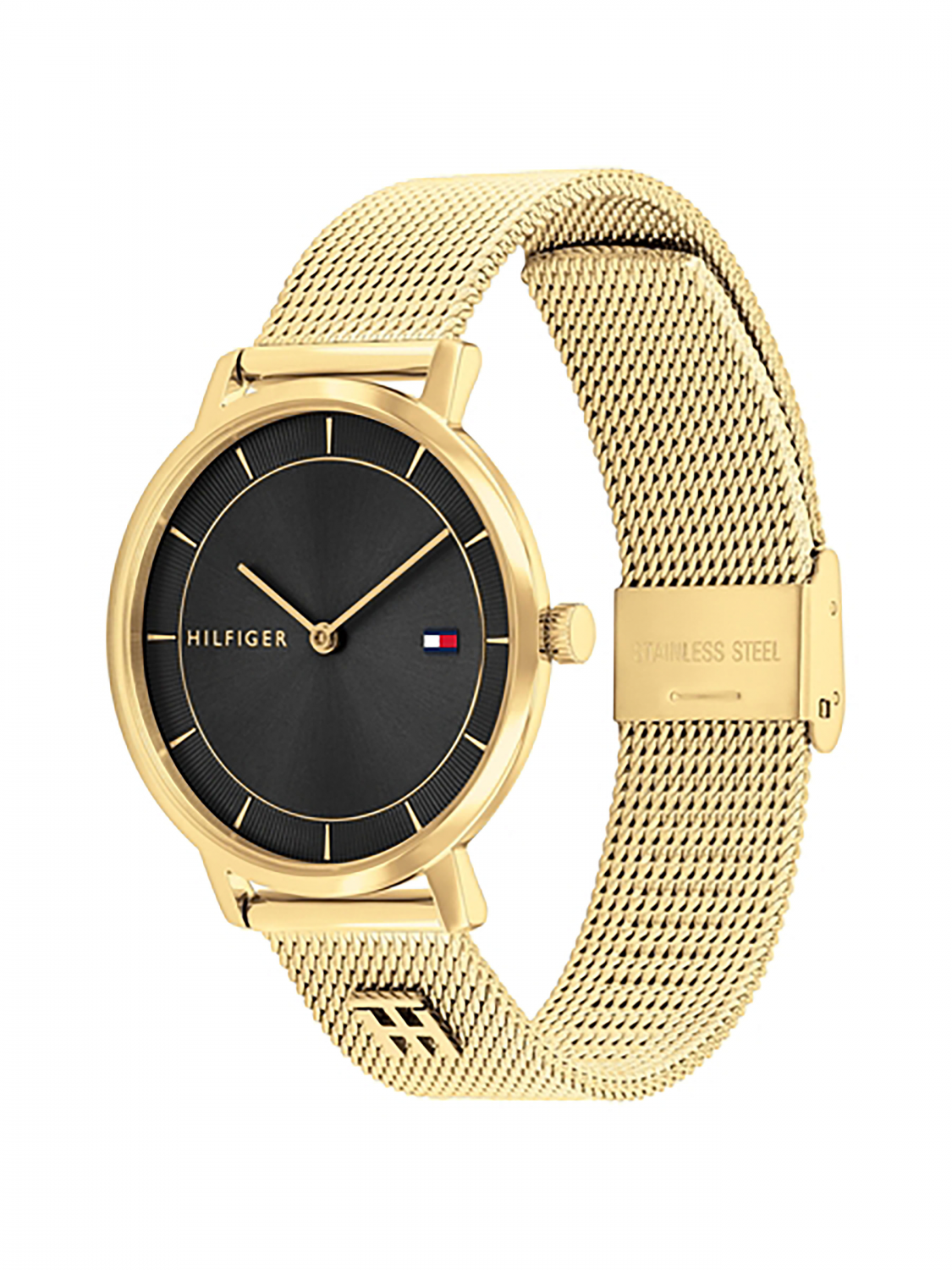 Женские кварцевые часы на стальном браслете миланского плетения. Часы с круглым корпусом. Минеральное стекло. Циферблат с метками в виде штрихов. Рифленая заводная головка.