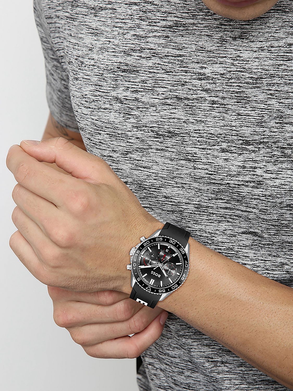 Мужские кварцевые часы BOSS 1514141, коллекция RUNNER. Корпус часов выполнен из нержавеющей стали. Функции: хронограф, дата. Диаметр : 44 мм. Водозащита 5 bar.
