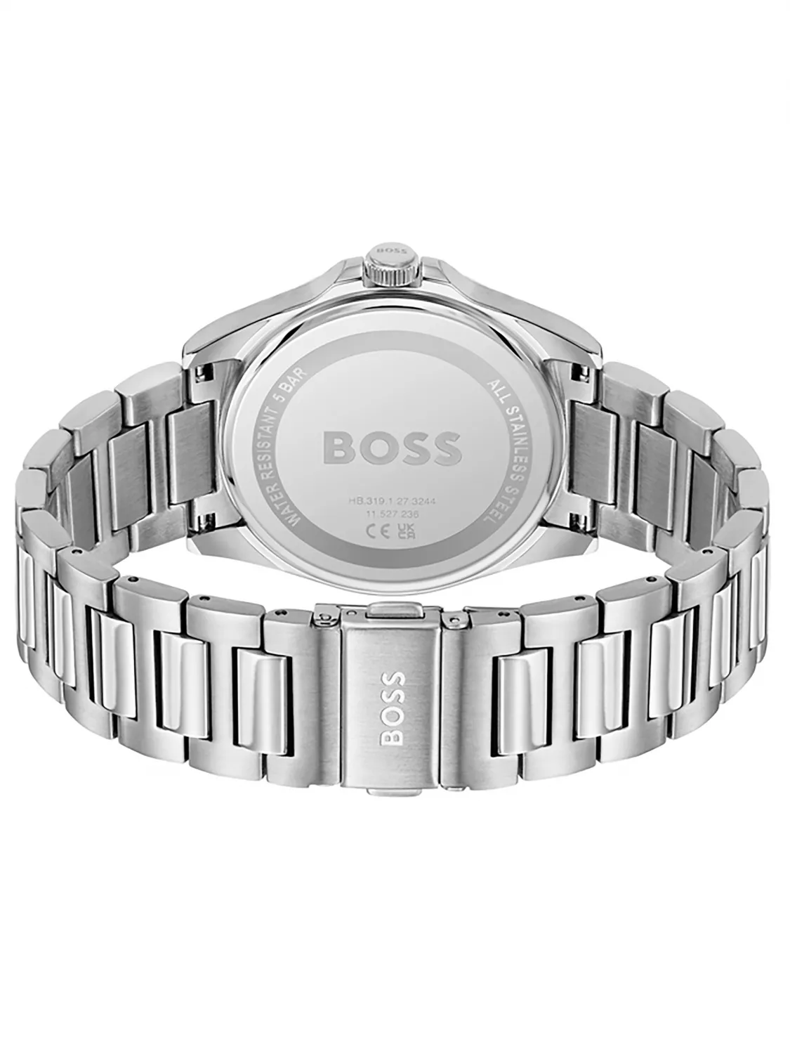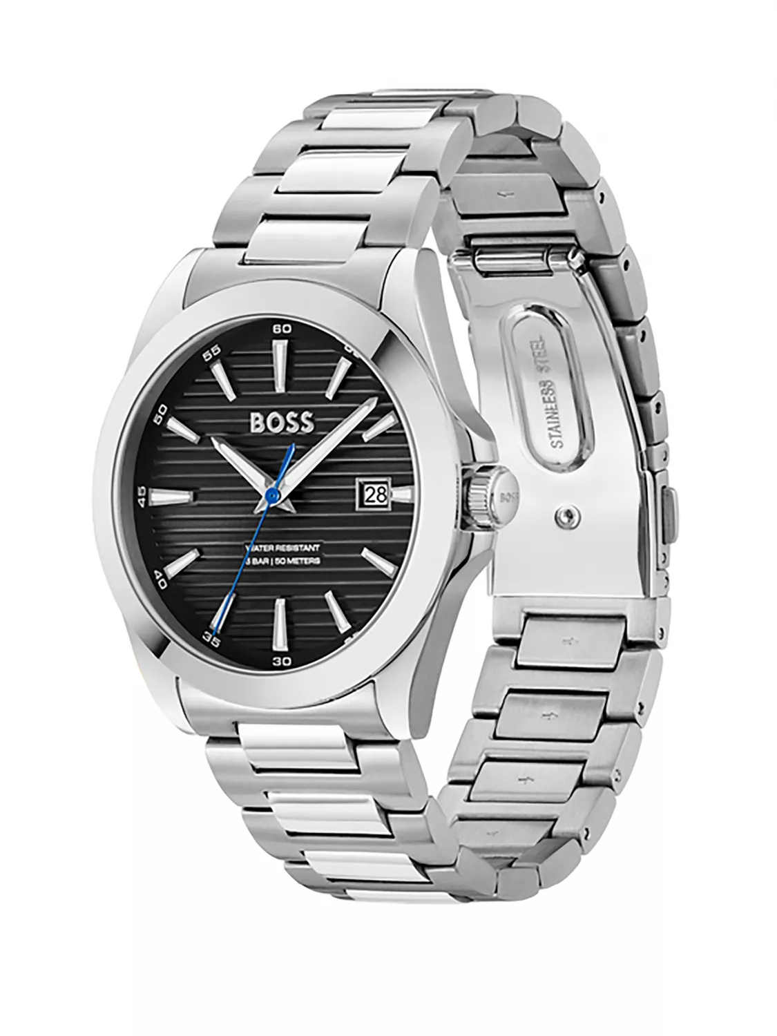 Мужские кварцевые часы BOSS 1514170, коллекция STRIKE. Корпус часов и браслет выполнены из нержавеющей стали. Диаметр: 41 мм. Водозащита 5 bar.