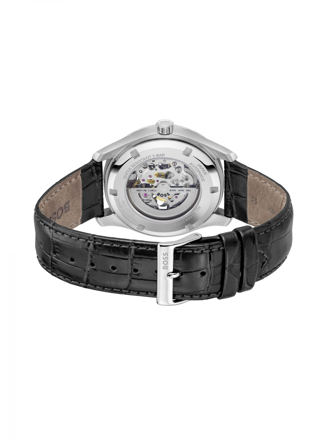 Мужские механические часы BOSS 1514234, коллекция PRINCIPLE SKELETON. Корпус часов выполнен из нержавеющей стали. Диаметр :41 мм. Водозащита 5 bar. Кожанный чёрный ремешок с классической застёжкой.