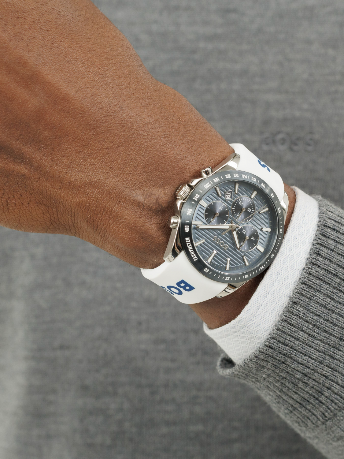 Мужские кварцевые часы BOSS 1514238, коллекция STRIKE. Корпус часов выполнен из нержавеющей стали. Функции : хронограф, дата. Ремешок силиконовый с классической застёжкой. Диаметр : 41 мм. Водозащите 5 bar.
