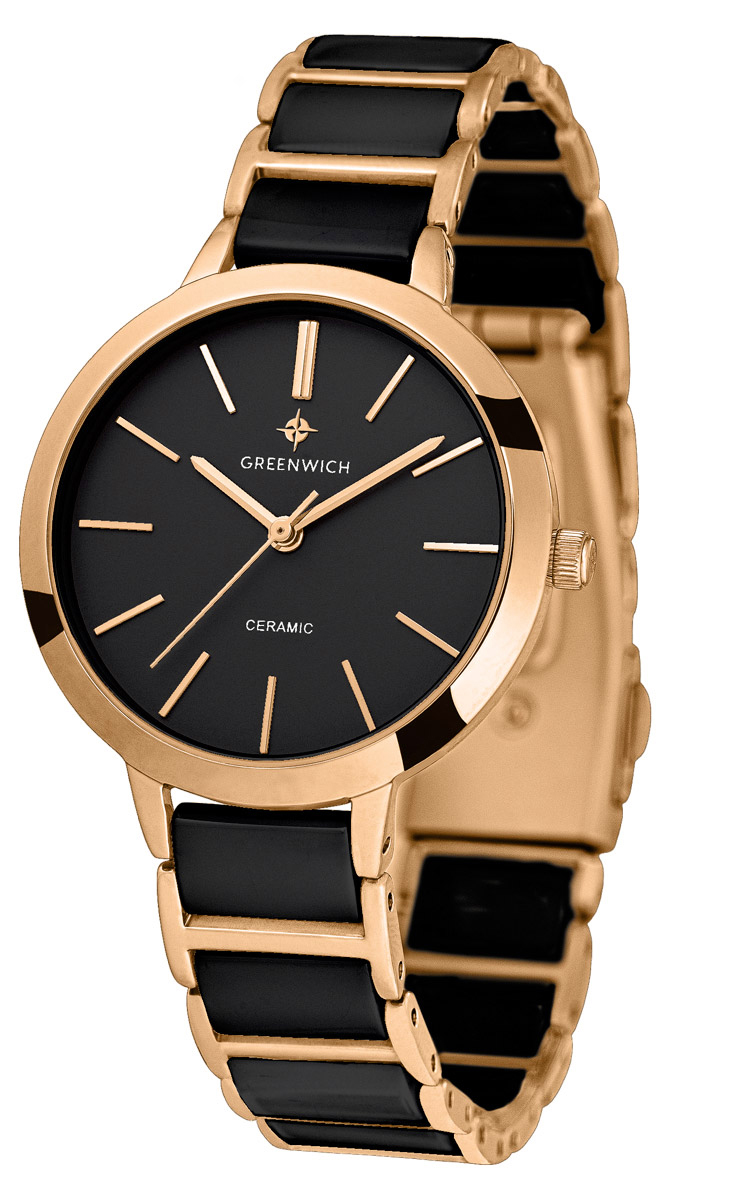 Лаконичные часы серии Fortune в круглом корпусе 32 мм из гипоаллергенной нержавеющей стали с PVD-покрытием из розового золота. На матовом циферблате хорошо читаются полированные риски и стрелки часов, минут и секунд – они контрастно выделяются на черном фоне. За точный ход стрелок отвечает кварцевый механизм Miyota. Звенья изящного браслета сделаны из высокотехнологичной керамики черного цвета. Часы из этого современного материала удобно носить в любую погоду: керамика быстро нагревается до комфортной температуры тела. А ее естественный блеск позволит надолго сохранить первоначальный вид часов.