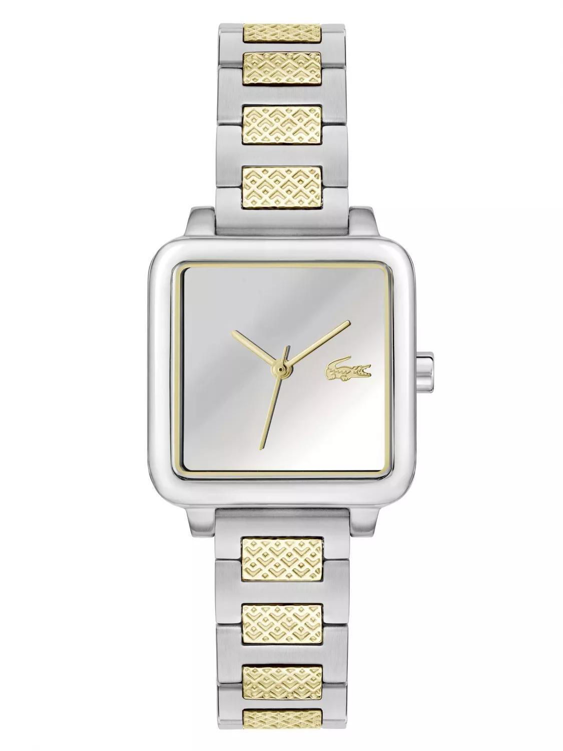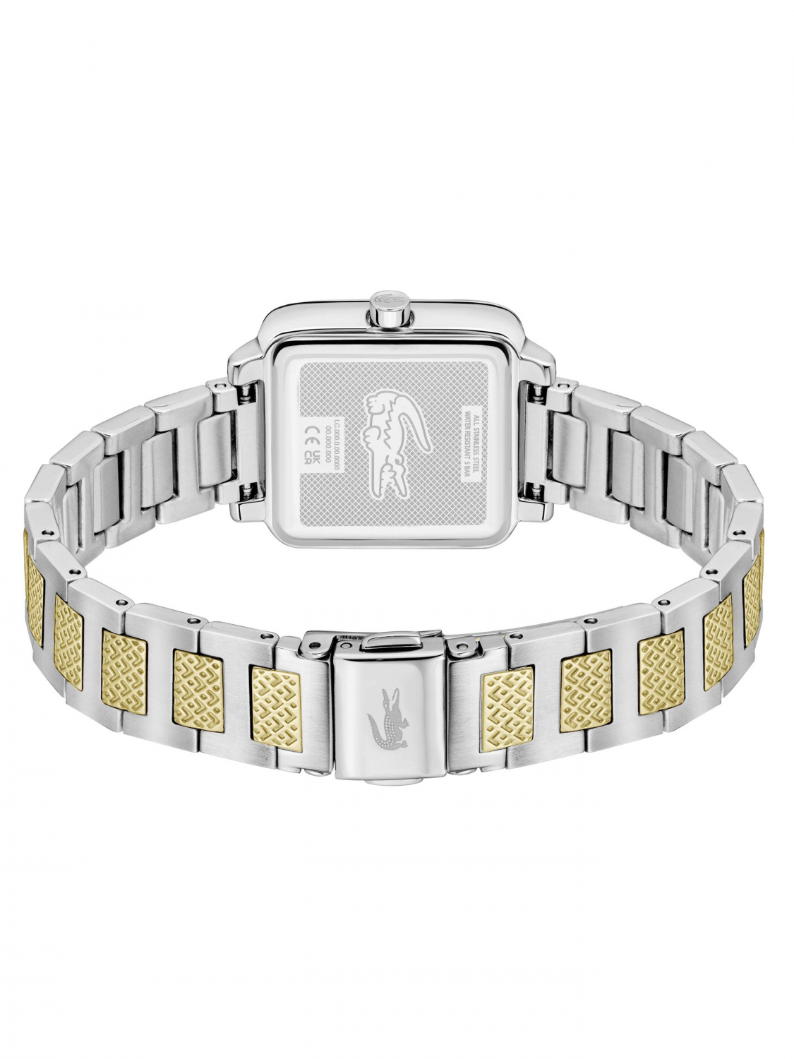 Квадратный корпус часов выполнен из нержавеющей стали.