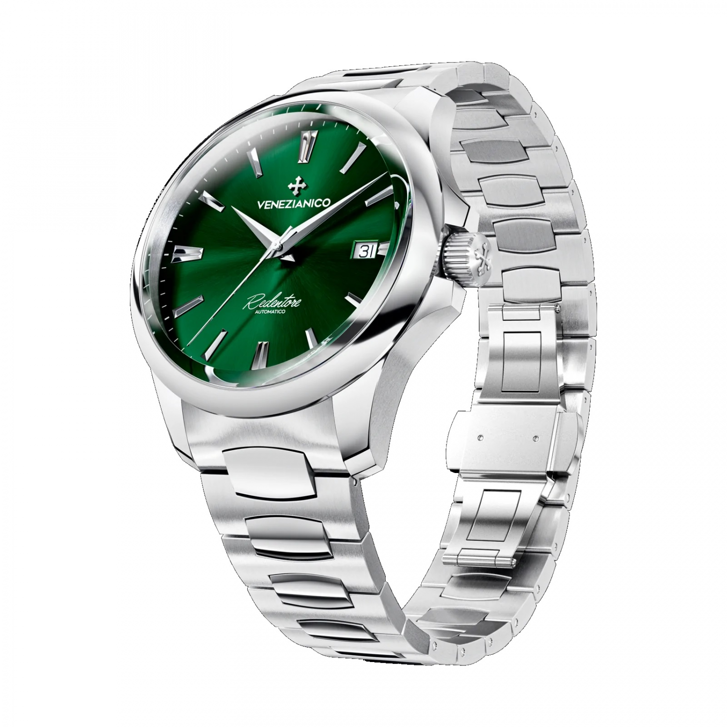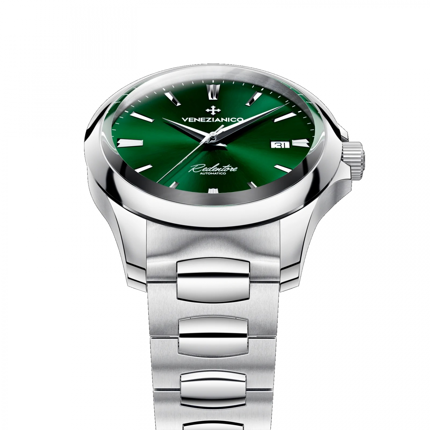 Простые и удобные часы на стальном браслете - идеальный вариант на каждый день. Redentore 40. Мужские часы с круглым корпусом. Дизайн вдохновлен храмом Basilica del Santissimo Redentore, который находится на самом широком острове Венеции. Архитектор храма Андреа Палладио, который известен как отец неоклассического стиля. В механизме 24 камня, 21600 полуколебаний в час. Запас хода 41 час. Возможность ручного завода. Циферблат с метками в виде штрихов выполнен по технологии Sunray (солнечные лучи). Клиновидные стрелки в стиле Dauphine. Окошко даты находится в положении 3 часа. Задняя крышка крепится на 6-ти винтах и украшена выгравированным изображением храма Basilica del Santissimo Redentore. Индивидуальный серийный номер. Рифленая заводная головка с защитой. Браслет Canova с раскладывающейся застежкой. Для изготовления данного браслета требуется 16 различных форм.